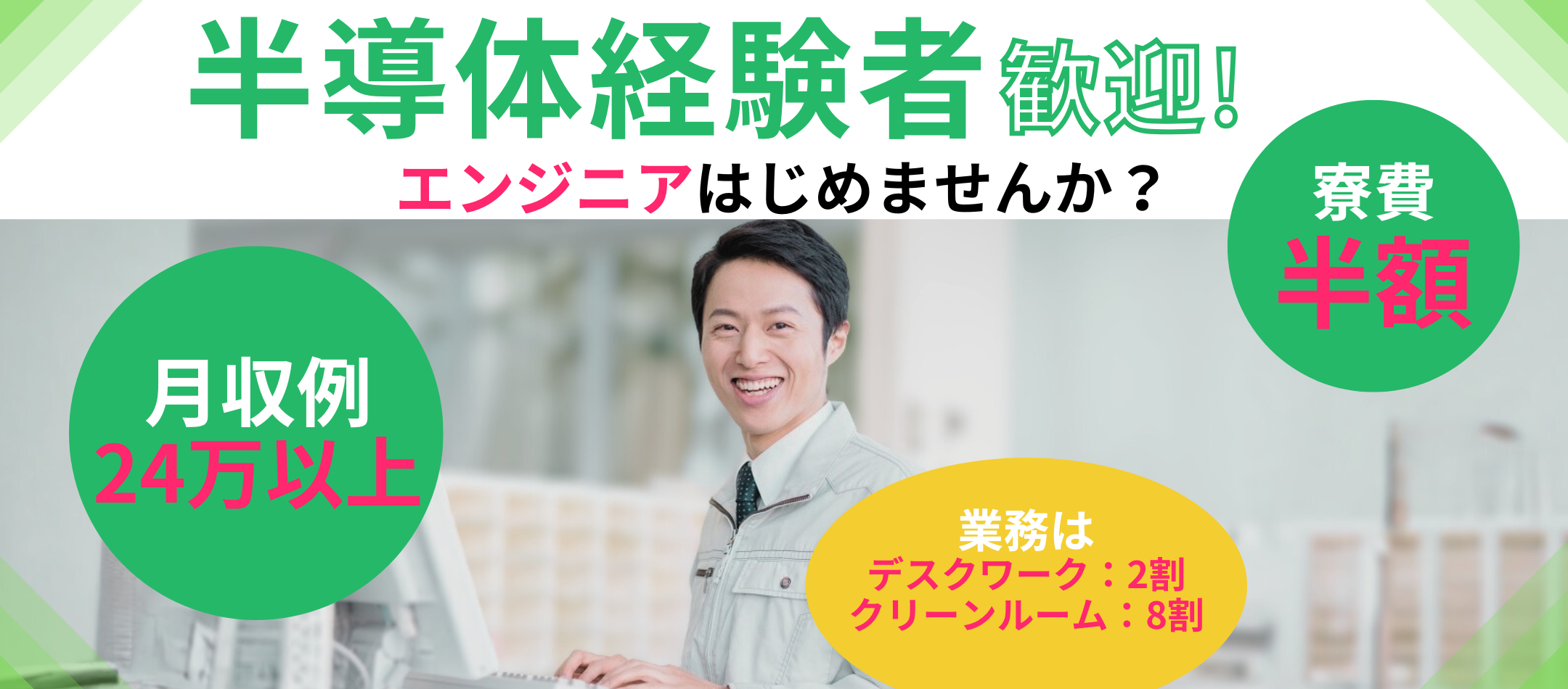 もちろん理工系卒者/情報処理系卒/クリーンルーム作業経験者/半導体工場作業経験者/産業用設備/装置のエンジニア職経験者/半導体に関わる資格取得者も大歓迎です。
