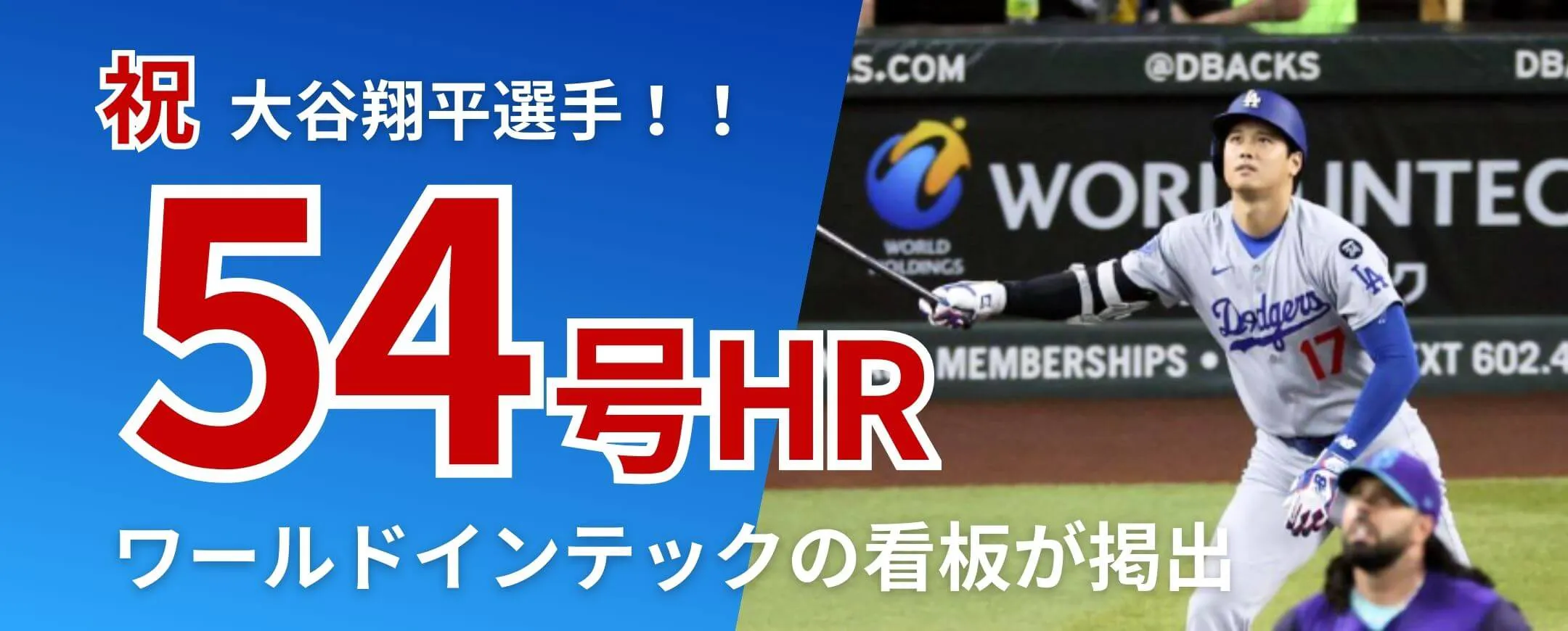 ダイヤモンドバックスVSドジャーズの試合にて、ドジャーズの大谷翔平選手が54号ホームランを打ち、ナショナルリーグ西部地区で4年連続の優勝を決めました。