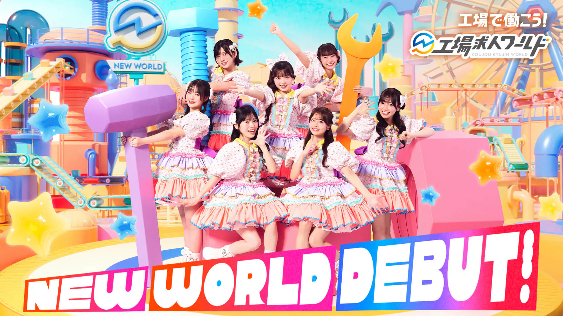 ワールドインテックのタイアップ曲「Because of You(各種音楽配信サービスにて配信予定)」と新作衣装にも大注目!カワイくてポップな工場の世界にKAWAII LAB. SOUTHが迷い込んだコンセプトの中で、新しい一歩を踏み出す皆さんにパワーを与えるような内容になっています!