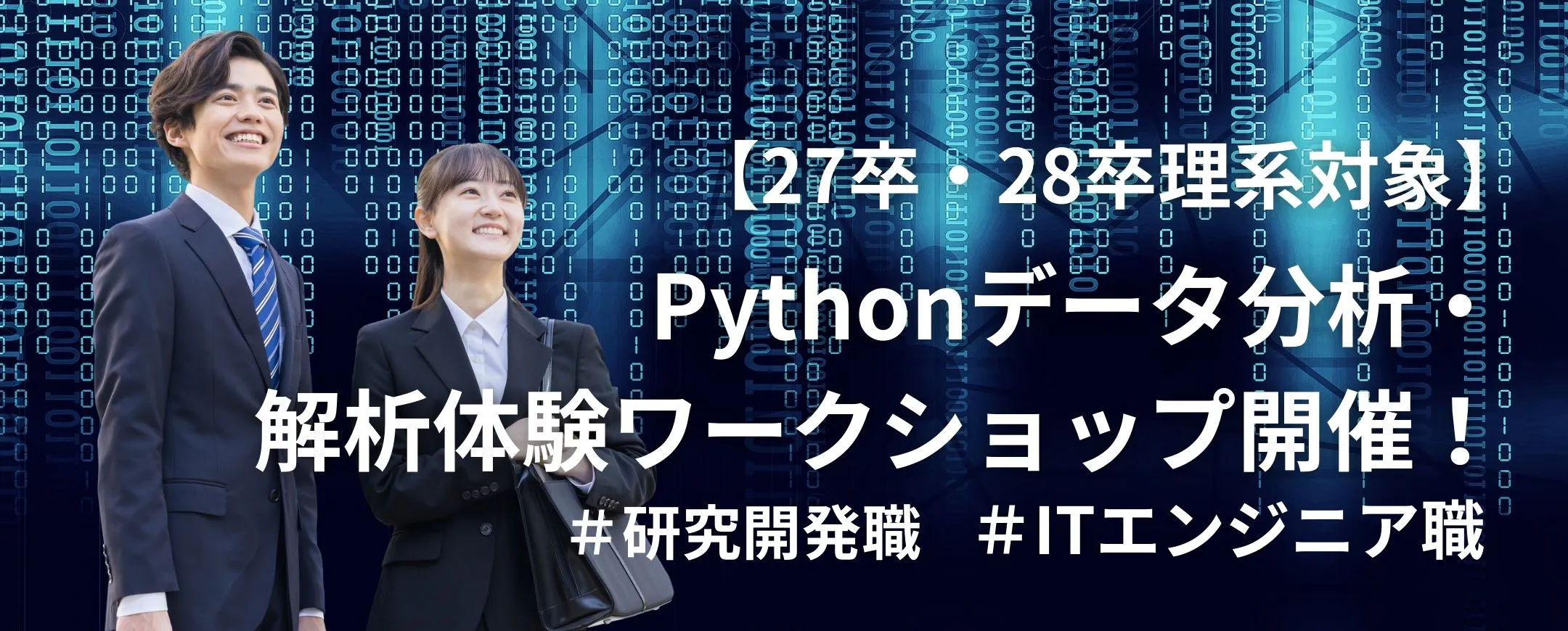 理系学生に向けて、今後の大学研究や就職活動にも役立つ『Pythonデータ分析・解析体験ワークショップ』を実施させて頂きます!
